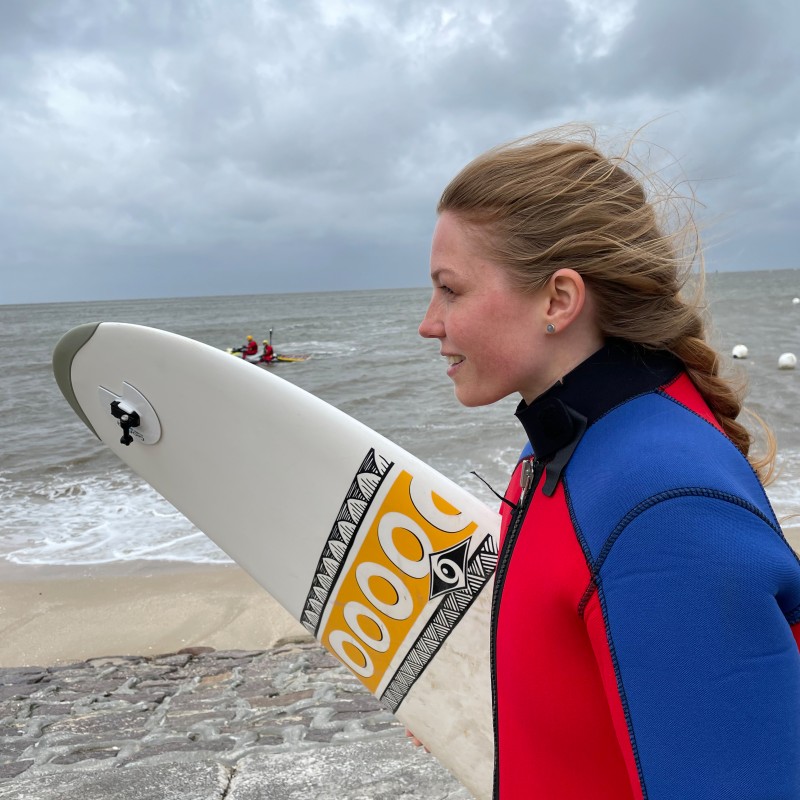 Wiebke Denker hat sich für uns in die stürmische Nordsee gestürzt (Windstärke 8-9 bft an diesem Tag). Unser Ziel war es, zu demonstrieren, wie gefährlich es werden kann, wenn man die unsichtbaren Strömungen unterschätzt. Gut, dass uns die Rettungsschwimmer der DLRG Cuxhaven unterstützt haben.