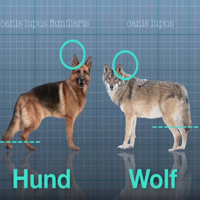 Hund und Wolf sind manchmal gar nicht so leicht zu unterscheiden. Und jetzt gibt es sogar Hybride. Denn ganz selten kommt es vor, dass streunende Hunde sich mit Wölfen paaren. Unsere Grafik zeigt, welches die Hauptunterschiede zwischen Wolf und Hund sind.